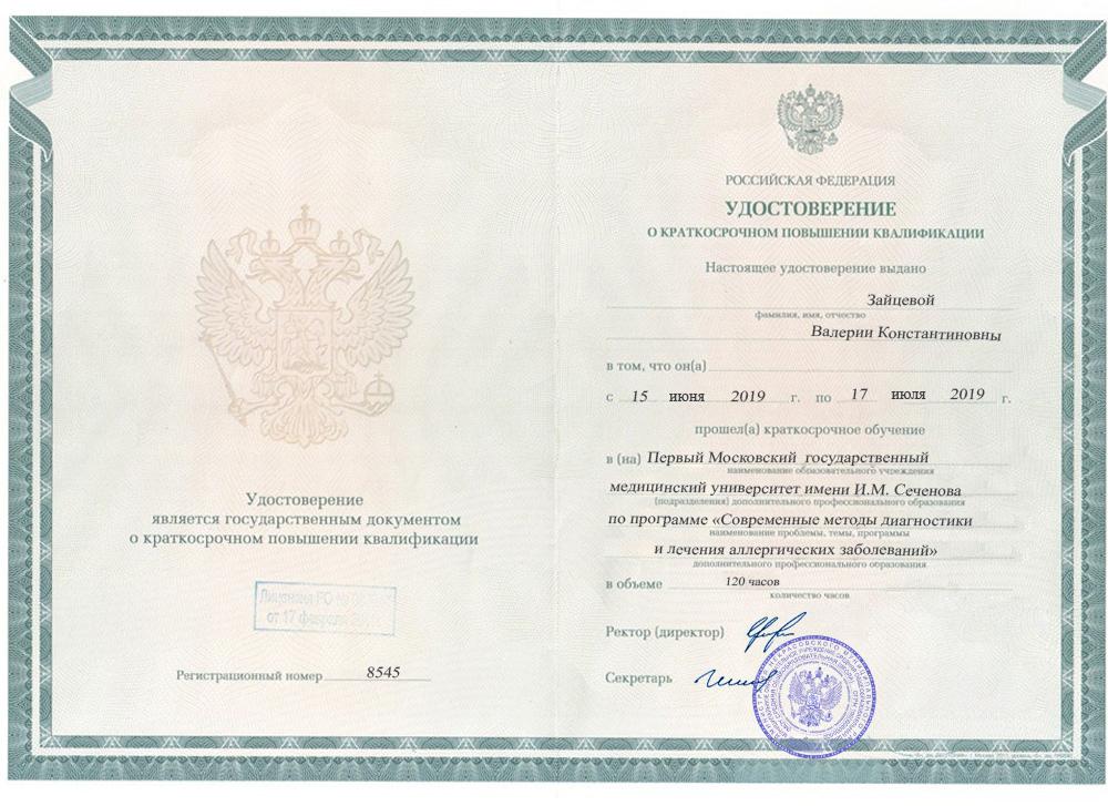 - 2019: «Современные методы диагностики и лечения аллергических заболеваний»
